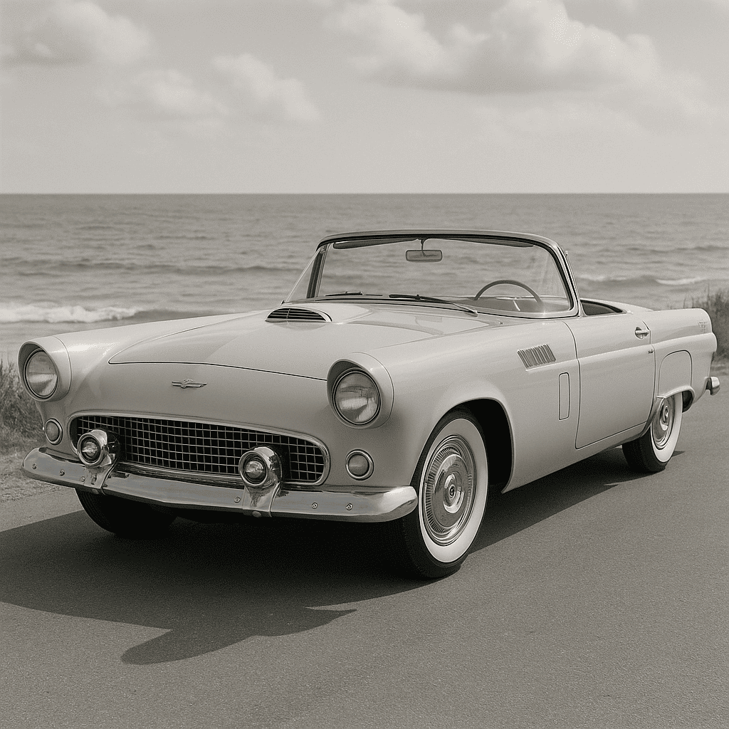 The baby-blue Thunderbird became an instant symbol of 1950s style and freedom, featured prominently in marketing campaigns.