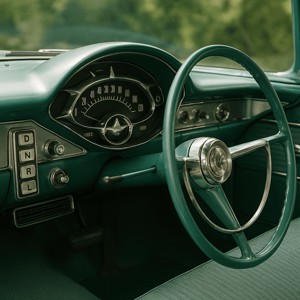 The Chrysler Imperial’s futuristic features captured the 1950s fascination with aviation-inspired technology.